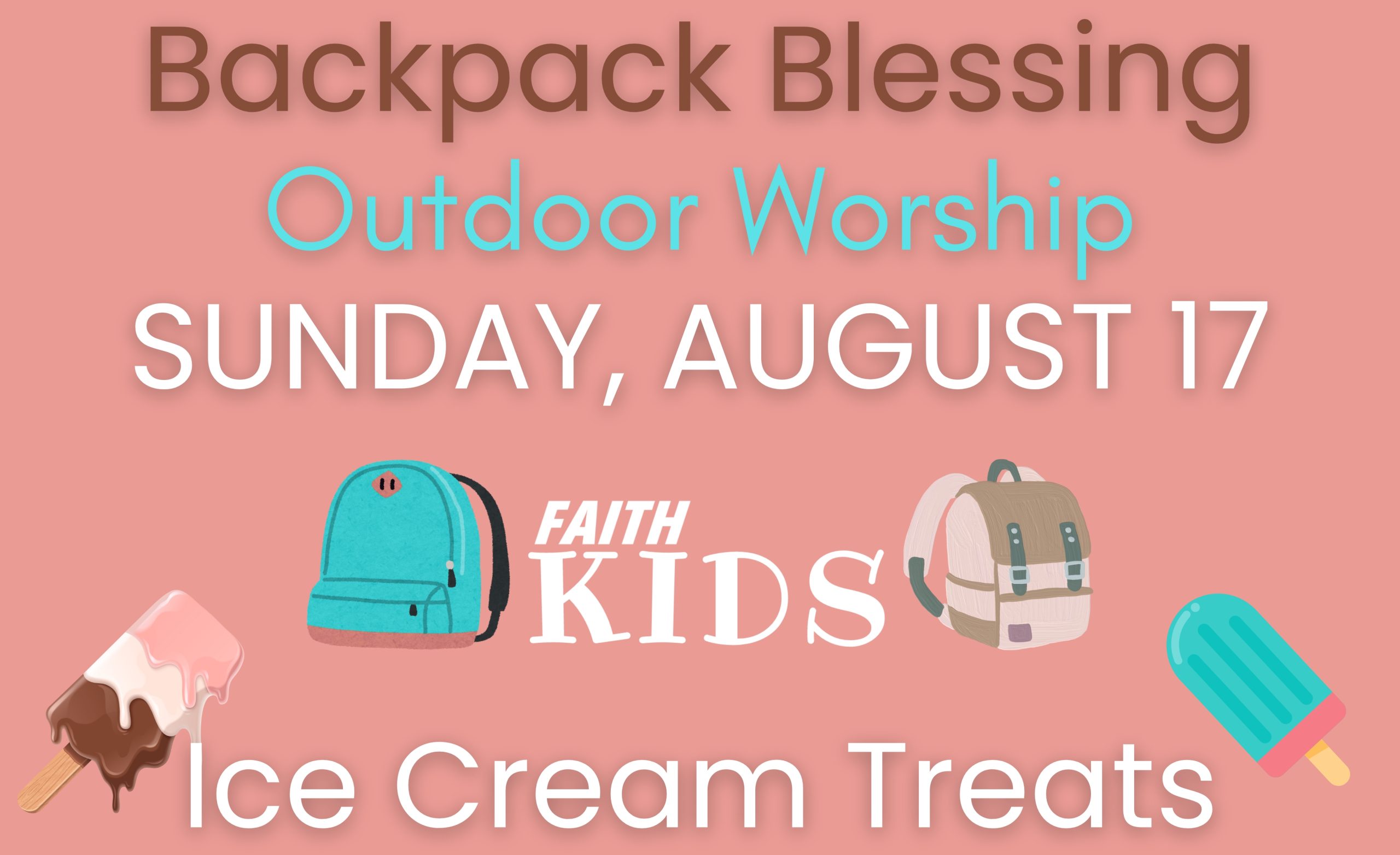 You and your pre-school through college age students are invited for a blessing! Be with us at 9:30 on Sunday, August 17 for OUTDOOR worship and a special prayer. We’ll enjoy ice cream treats too!
